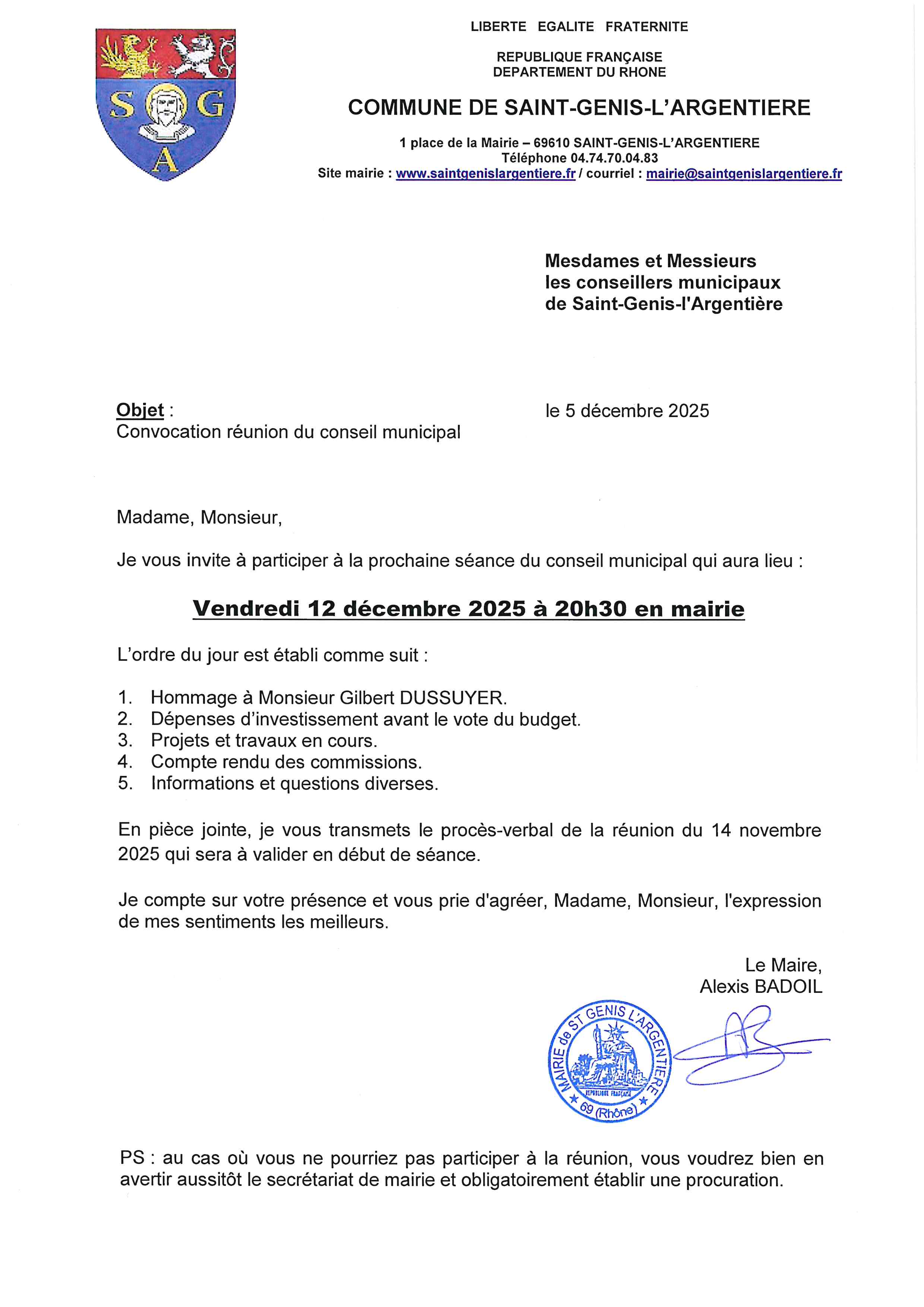 Mairie de Saint Genis l'Argentière Place de la Mairie 69610 - Saint Genis l'Argentière Tél. 04 74 70 04 83 Horaires d'ouverture : Le lundi, mercredi et vendredi de 14h à 18h